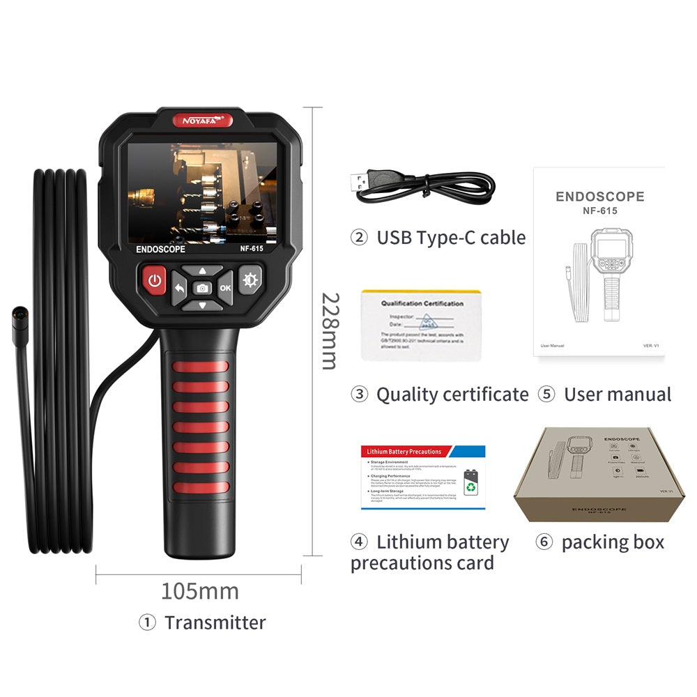 NOYAFA NF-615 Industrial Handheld HD Endoscope Camera with 3.5-inch IPS Screen, IP67 Waterproof, 1080P Resolution, and Flexible Cable