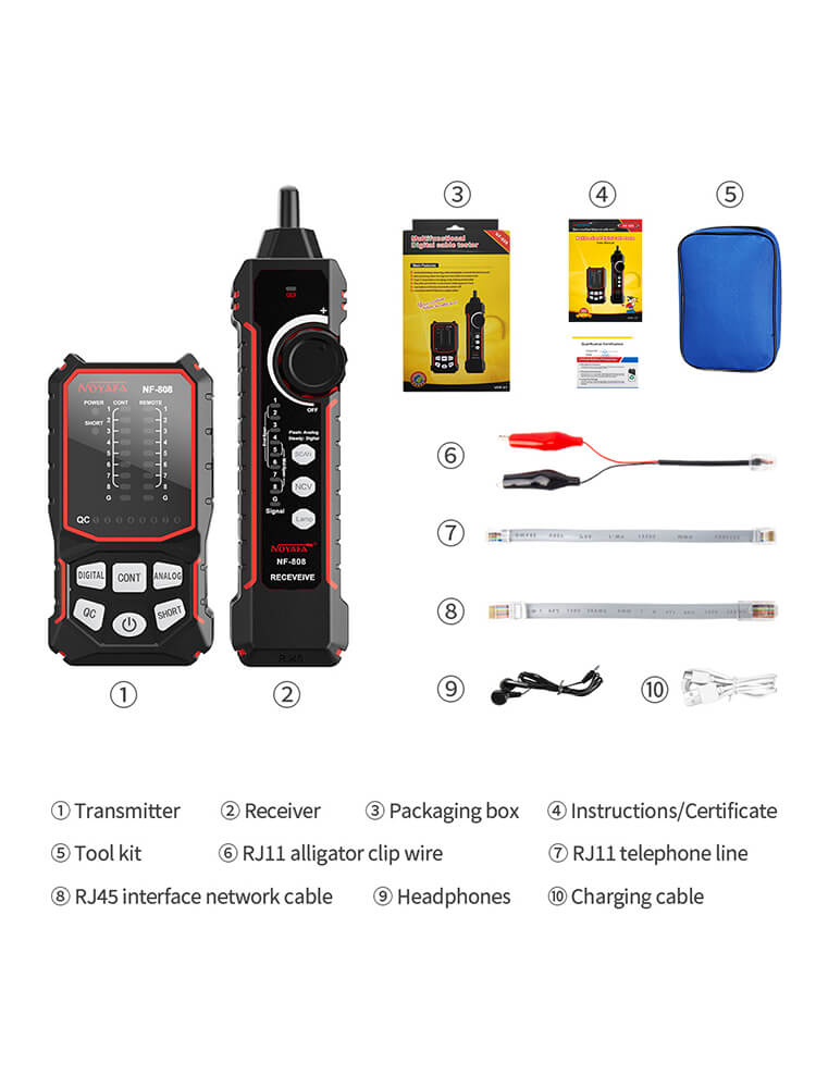 - Complete accessories: Shipped out with earphones for noisy workplace, alligator clamps for safe working, and RJ11&45 cables for replacement needs.