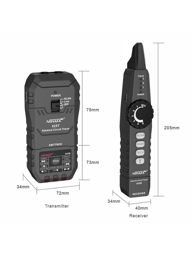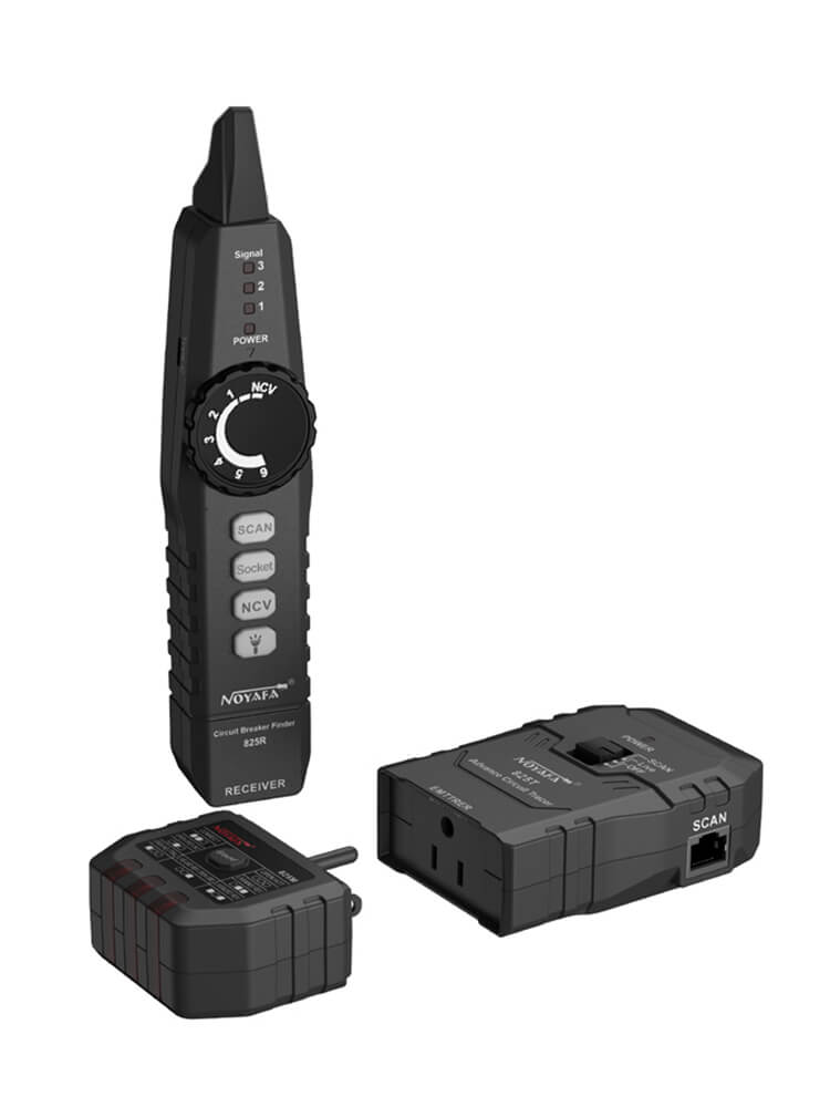 - 6-in-1 Electrical Kit: NF-825TMR is a multifunction electrical circuit tracing and testing kit. With 3 components and provided accessories, you can trace circuits or electric wires, locate circuit breakers, detect wiring faults, test outlets, find network cables, and detect voltage.