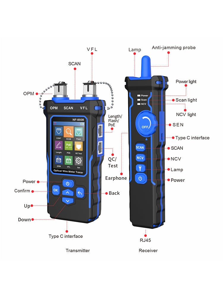 - Visual Fault Locator: Quickly navigate Fiber break points with visible red lights.