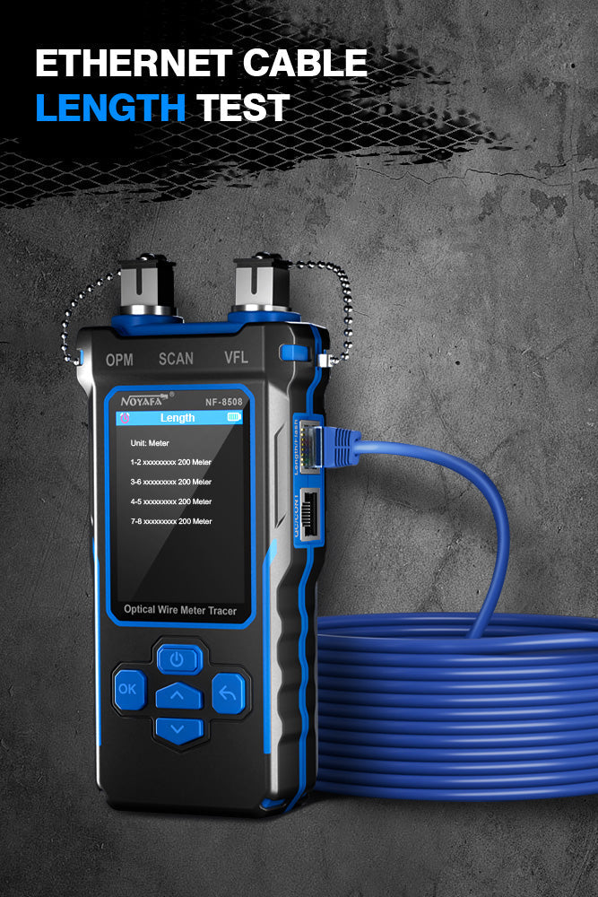 - Length test: Measure the length of CAT5/CAT5e/CAT6 cables up to 200 meters (656 feet). Help prepare the suitable cables for installation.