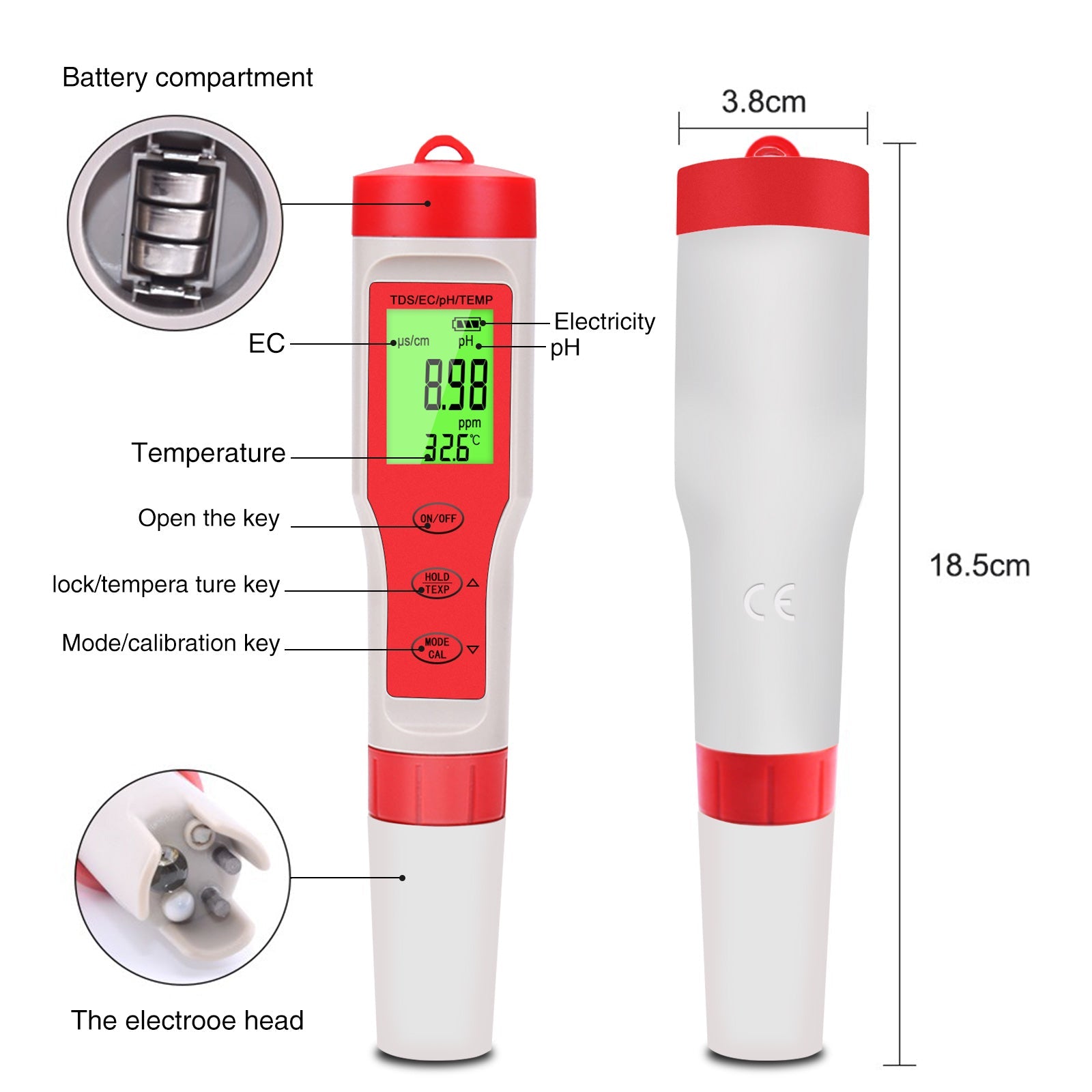 - 4-in-1 Model - NF-EZ9908 4-in-1 pH meter, you can accurately measure pH, TDS, EC, TEMP to ensure the health of your family's water.